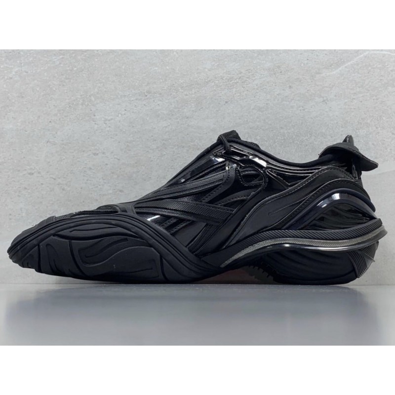 Microfiber and mesh caged upper with complex EVA/TPU/Rubber sole.