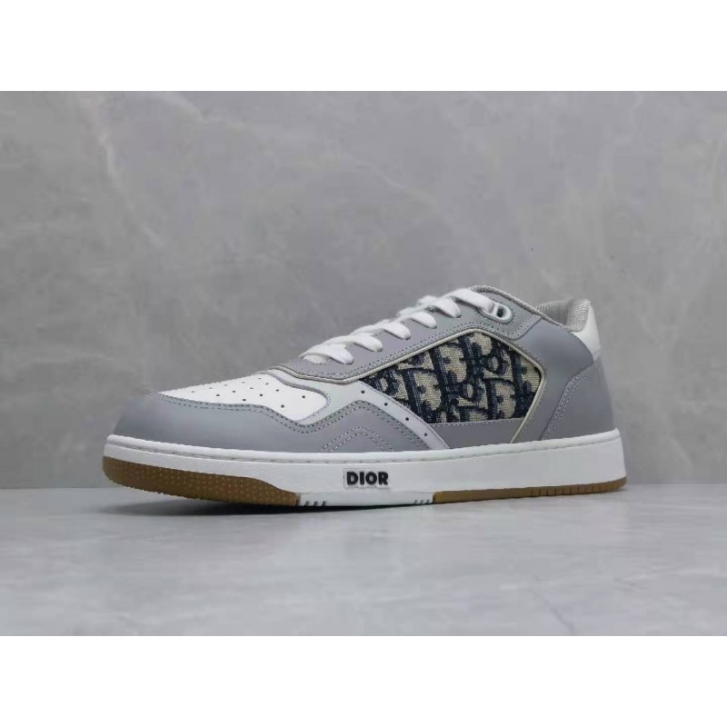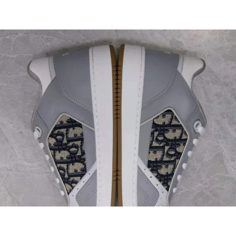 Gray and White Smooth Calfskin with Beige and Black Dior Oblique Jacquard