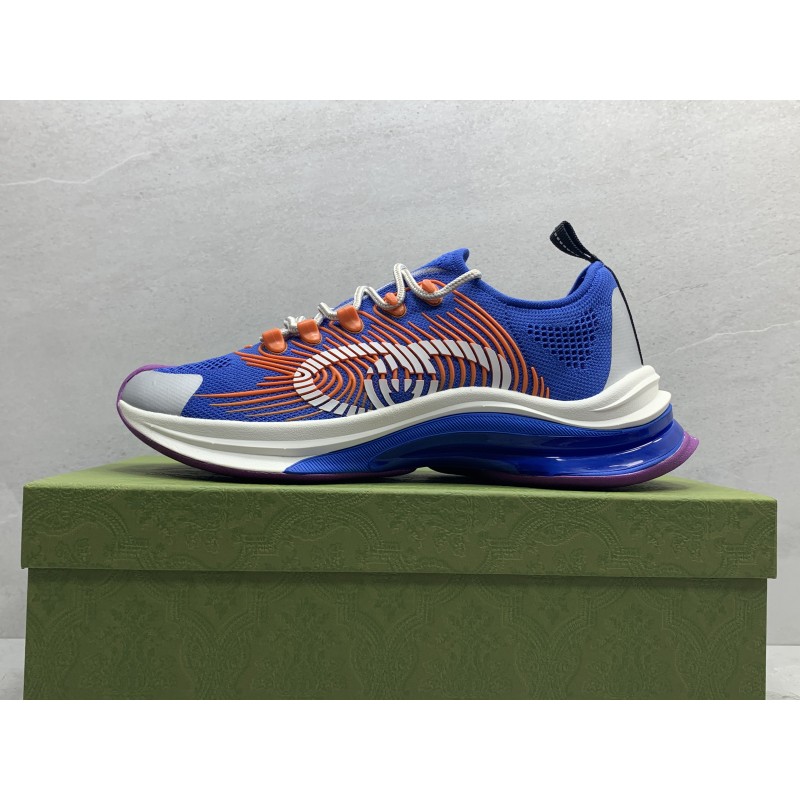 Designs inspired by the sporting world are interpreted through the Gucci lens with standout logo details. This pair of streamlined sneakers is crafted from GG technical knit fabric and defined by the Interlocking G. A bi-color sole completes the style with a playful note of chromatic contrast.