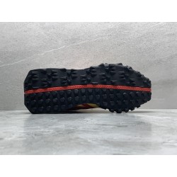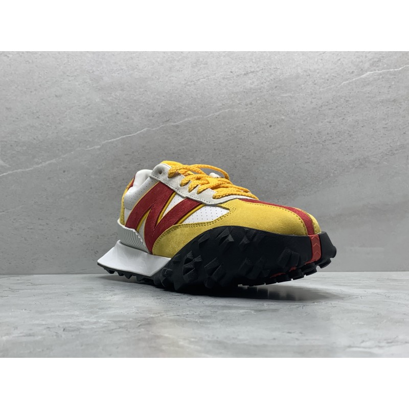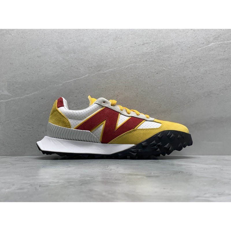 The Casablanca x New Balance XC-72 "Gold Yellow" introduces a new silhouette from the Parisian fashion label and Boston-based sportswear brand. Inspired by motorsport and billed as a ‘sports car for your feet,’ the sneaker revives a familiar color palette first used on the duo’s 327 collaboration from spring 2020. The upper is crafted from perforated white leather with off-white suede overlays and a textured heel counter. An oversized ‘N’ logo is rendered in orange suede and outlined in green trim. Underfoot, a green rubber outsole wraps up the white foam midsole, featuring two different traction patterns separated by a vertical orange line.