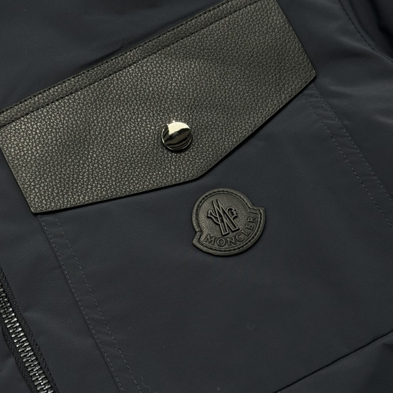 Details: The chest pocket features a leather flap with a pebbled leather flap and matte metal buckle, exuding understated elegance. A concealed adjustment drawstring adds a touch of sophistication with every movement. The black satin inner pocket features an embedded "ID card"! Silver snap buttons and red, white, and blue webbing exude understated luxury, with a silky smooth feel both visually and to the touch.