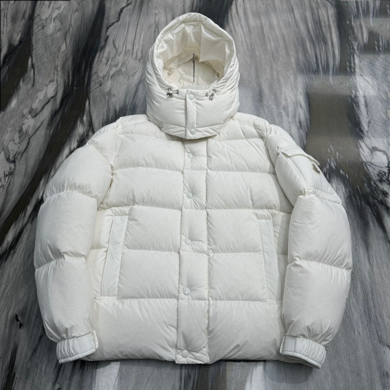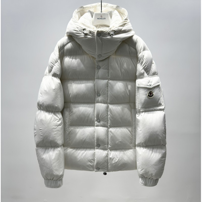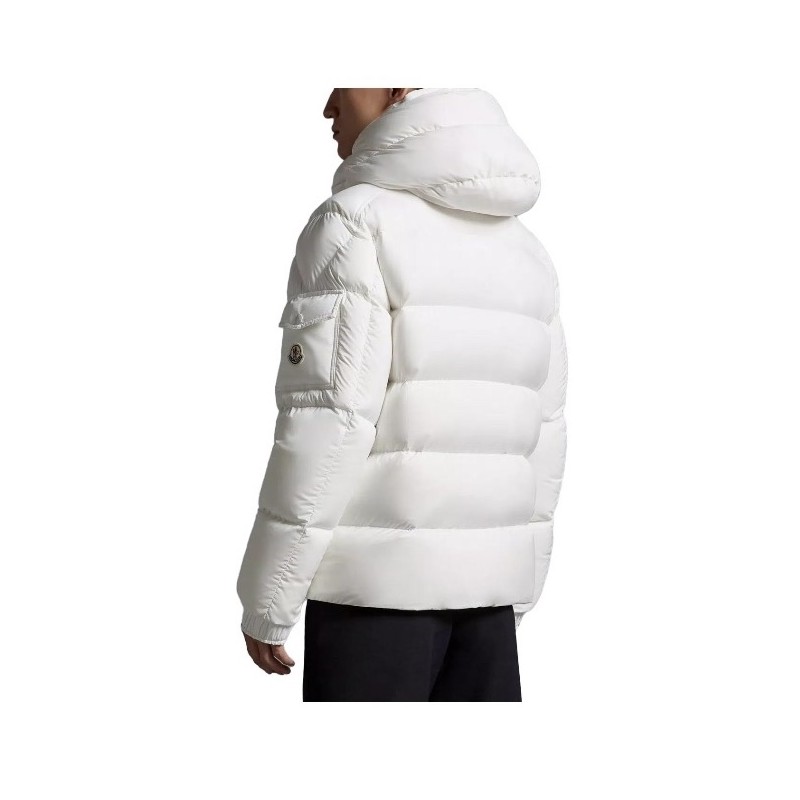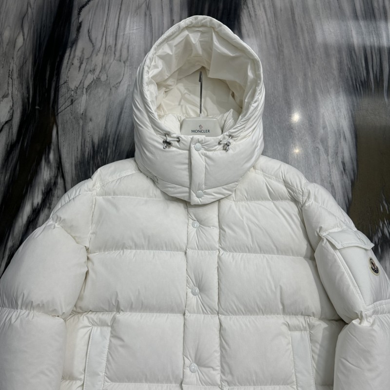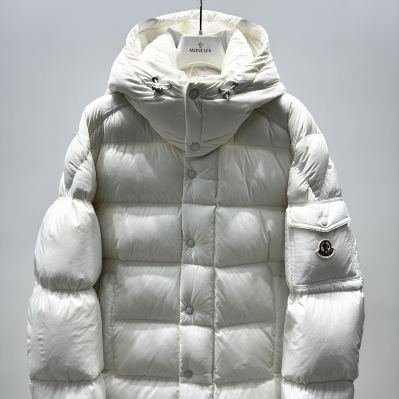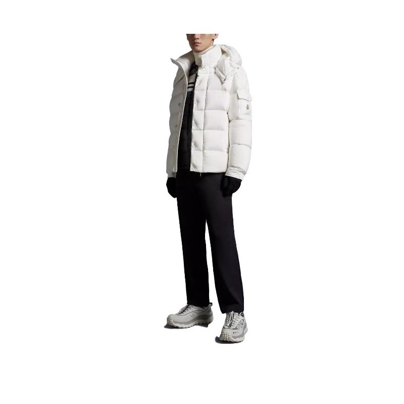 M0ncler Logo Print Double-Front Hooded Long-Sleeve Down Jacket for Men