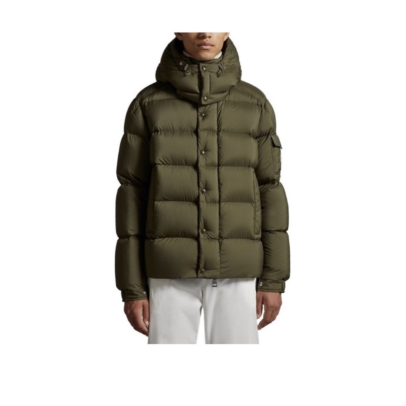 Moncler Logo Print Double-Front Hooded Long-Sleeve Down Jacket Green View larger