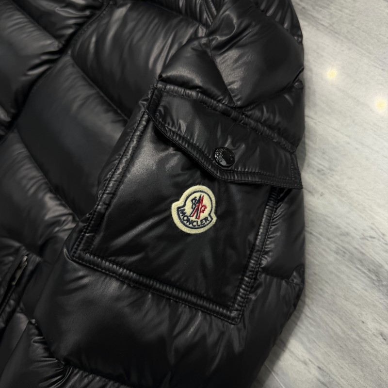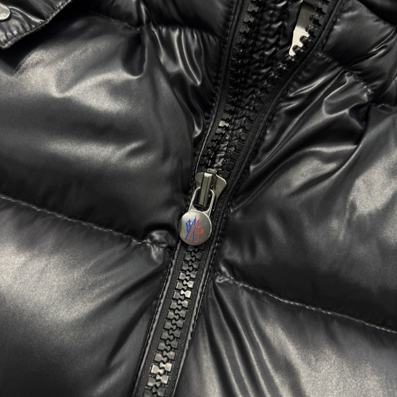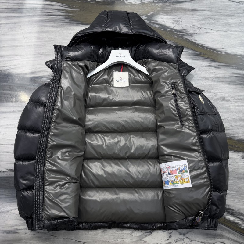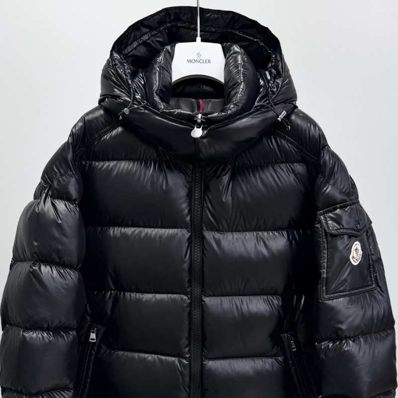 M0ncler Maya Series Solid Color Patent Leather High-Neck Hooded Down Jacket