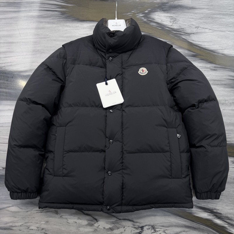 M0ncler Men's Reversible Stand Collar Down Jacket with Detachable Sleeves Black