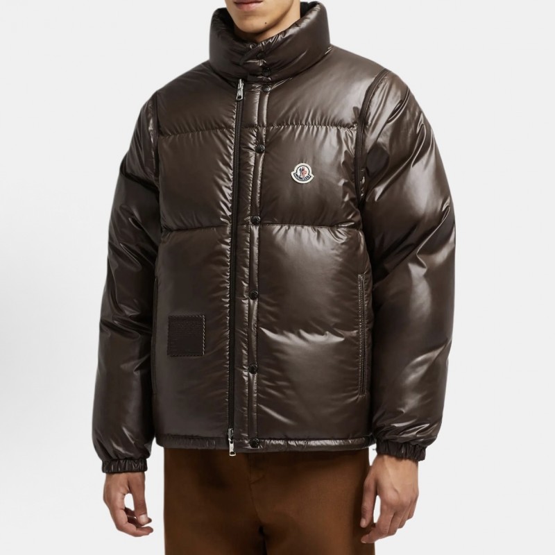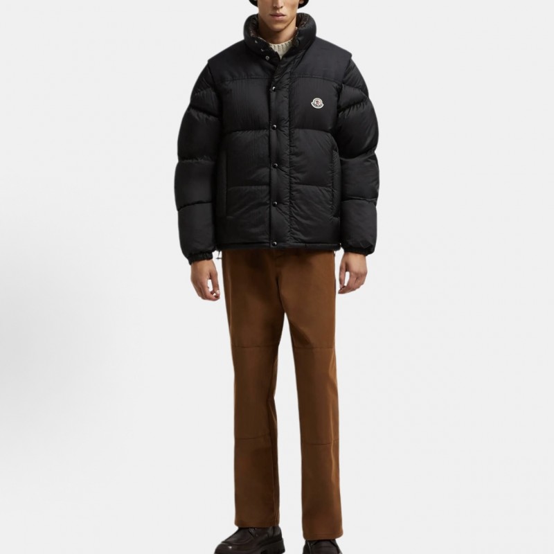 Moncler Men's Reversible Stand Collar Down Jacket with Detachable Sleeves Black