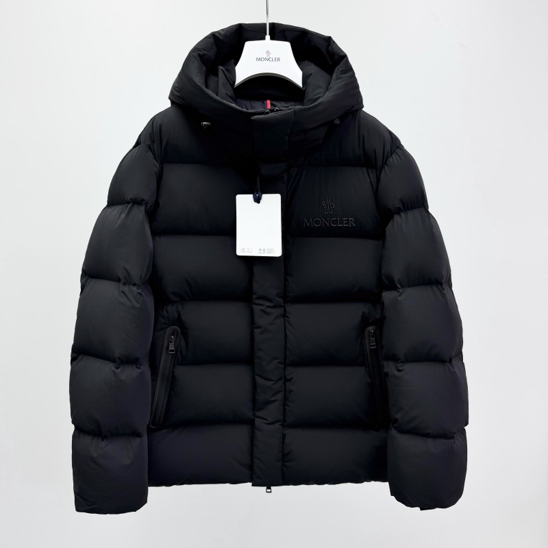 Moncler Solid Color Hooded Down Jacket Black View larger