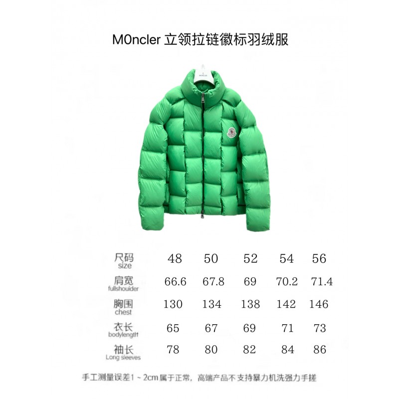 M0ncler Stand Collar Zipper Logo Down Jacket Green